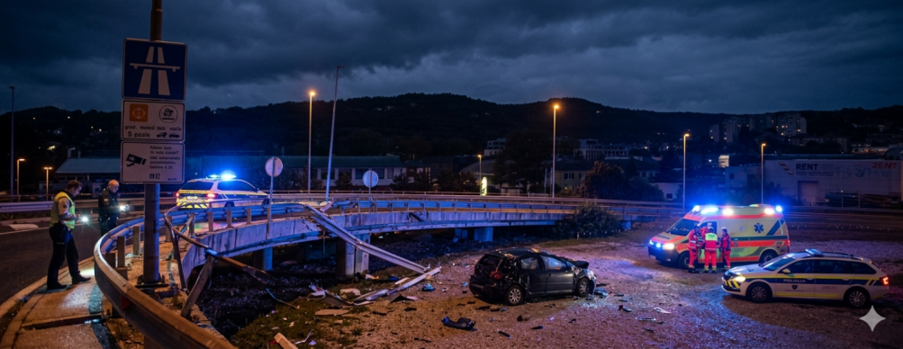 BEG PRED POLICISTI SE JE KONČAL V BOLNIŠNICI: Pijan voznik v Kopru prebil ograjo in zletel z nadvoza